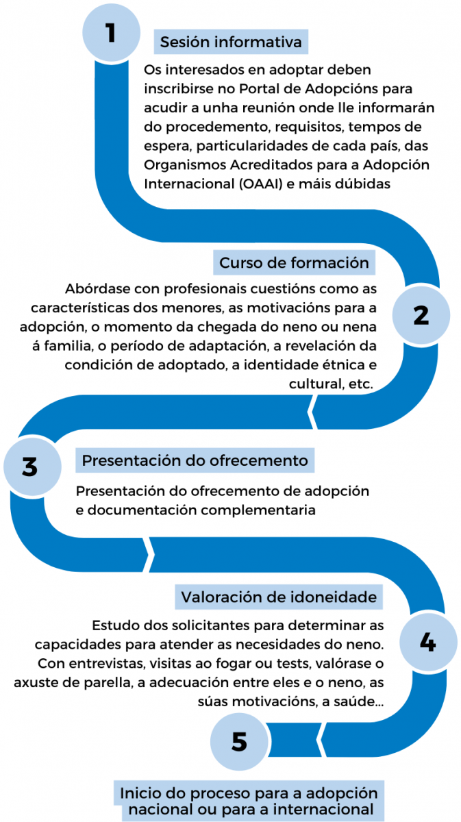 Trátase de atoparlle a mellor familia aos nenos, nenas ou adolescentes, e non de atopar un neno para satisfacer a necesidade das familias. Por iso, a adopción é un proceso minucioso e meditado que ten como fin último o benestar do menor. Aquí podes ver as fases iniciais que ten o proceso de adopación:
