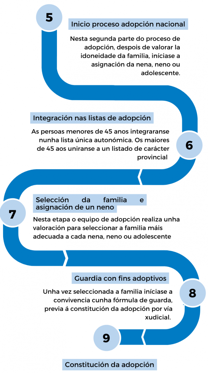 No transcurso das fases iniciais do proceso de adopción a familia xa decide se opta por realizar unha adopción nacional, unha internacional ou ambas á vez.